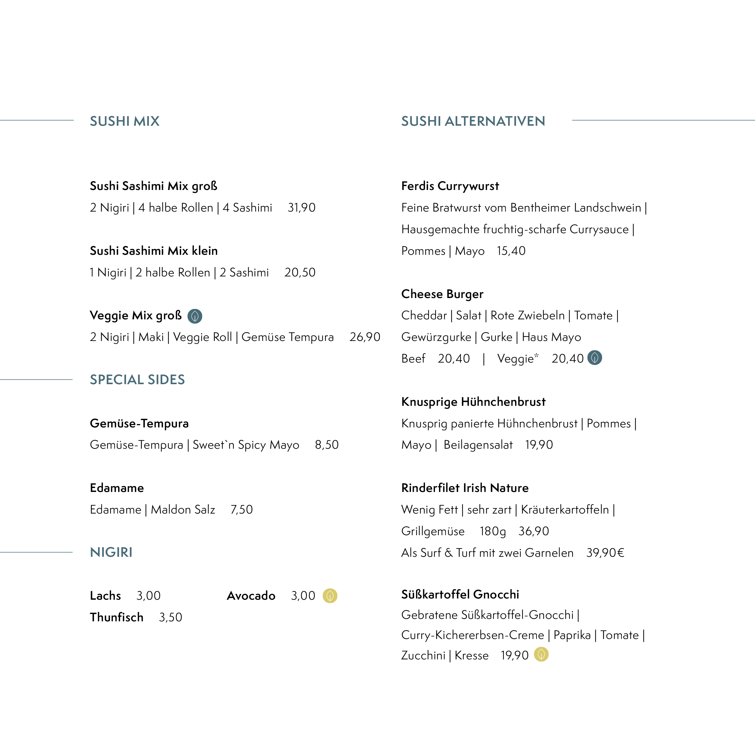 180g feinstes Rindfleisch aus der Region oder unsere selbstgemachten Veggie-Patties. Ein handgemachtes Bun von unserem Bäcker des Vertrauens. Dazu hausgemachte Soßen und frische Salate. Fertig ist der perfekte Burgergeschmack.